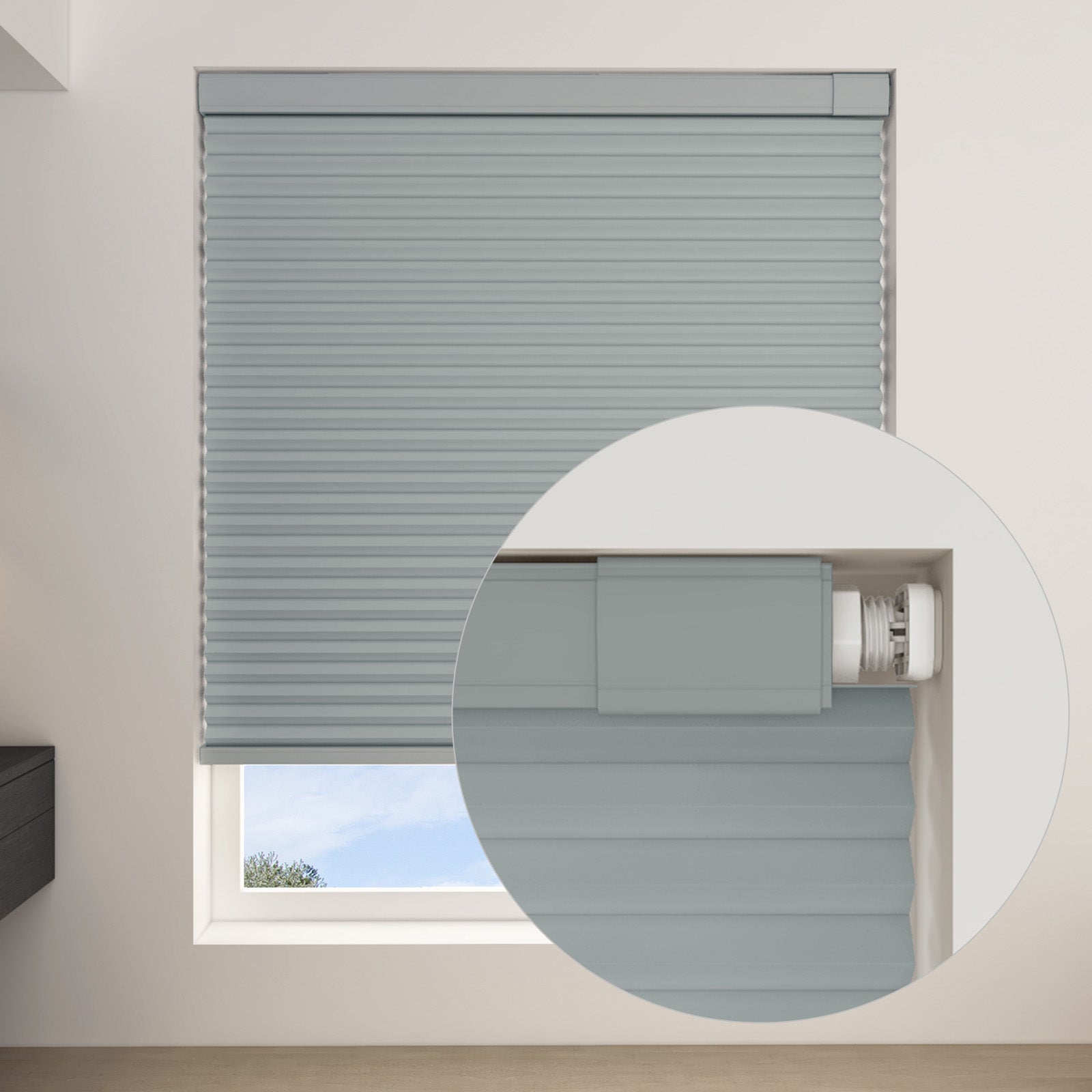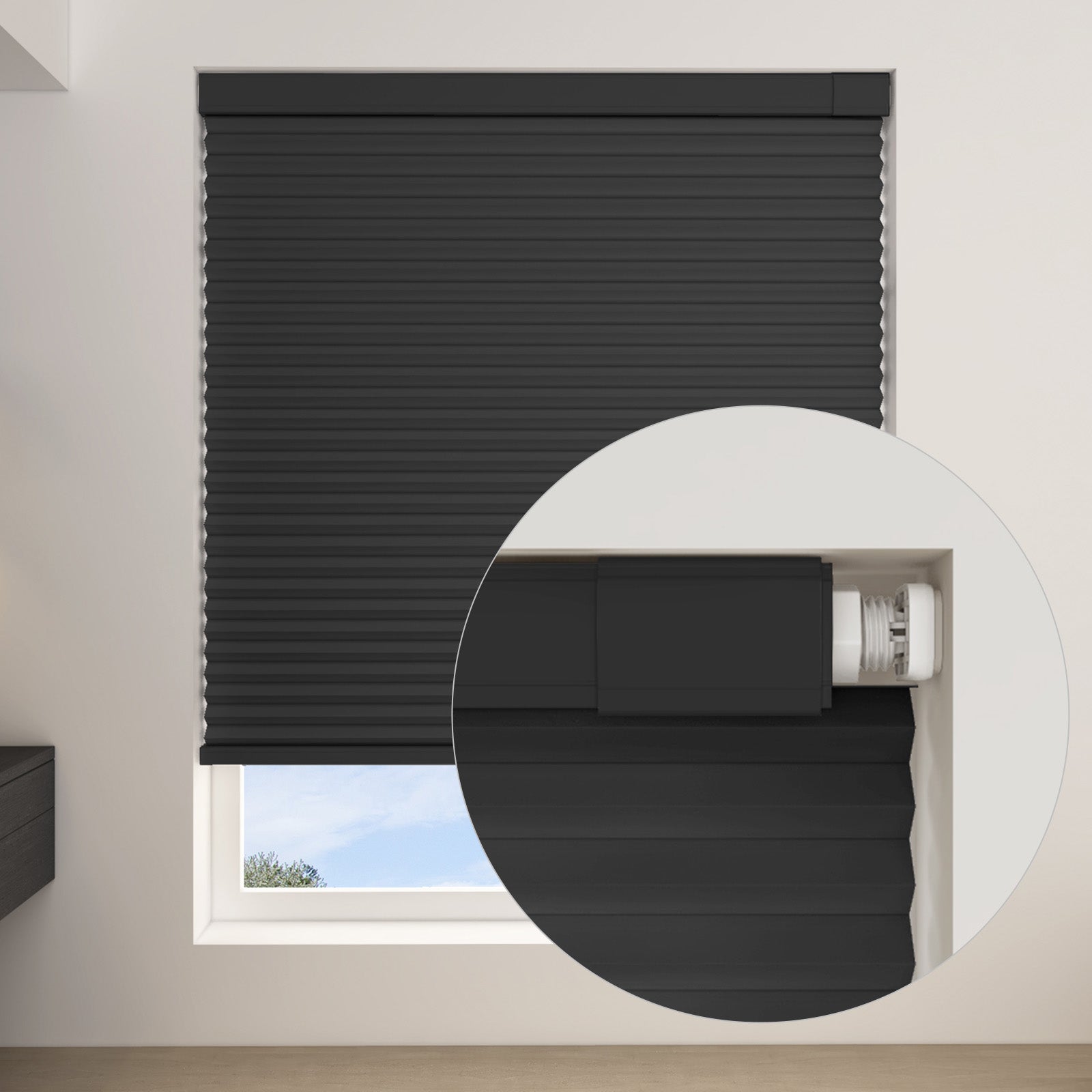 Changshade Custom No Drill No Tools Cordless Blackout 1.5 Inch Cellular Shadess