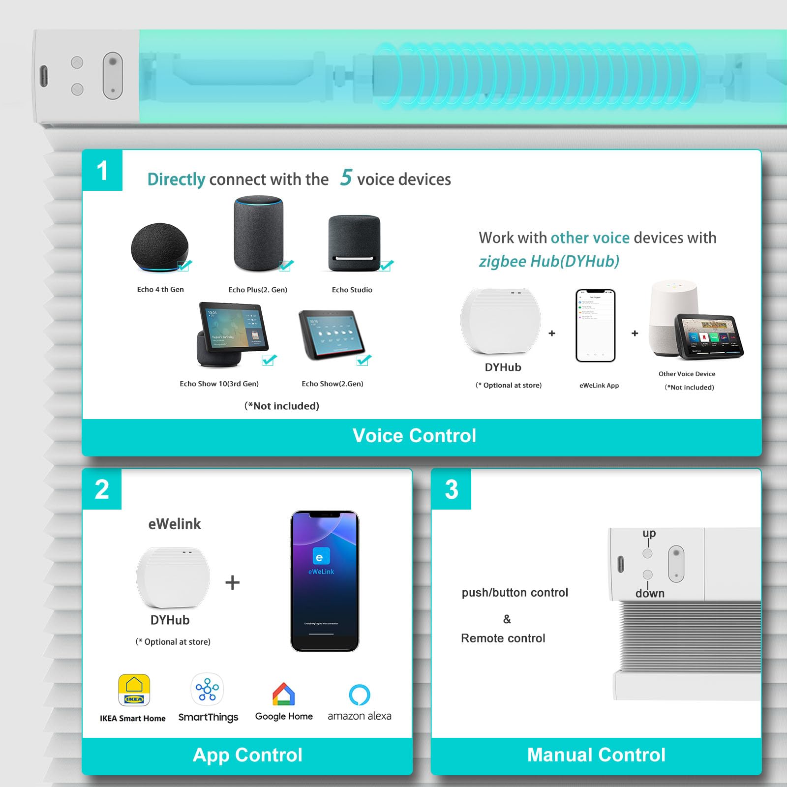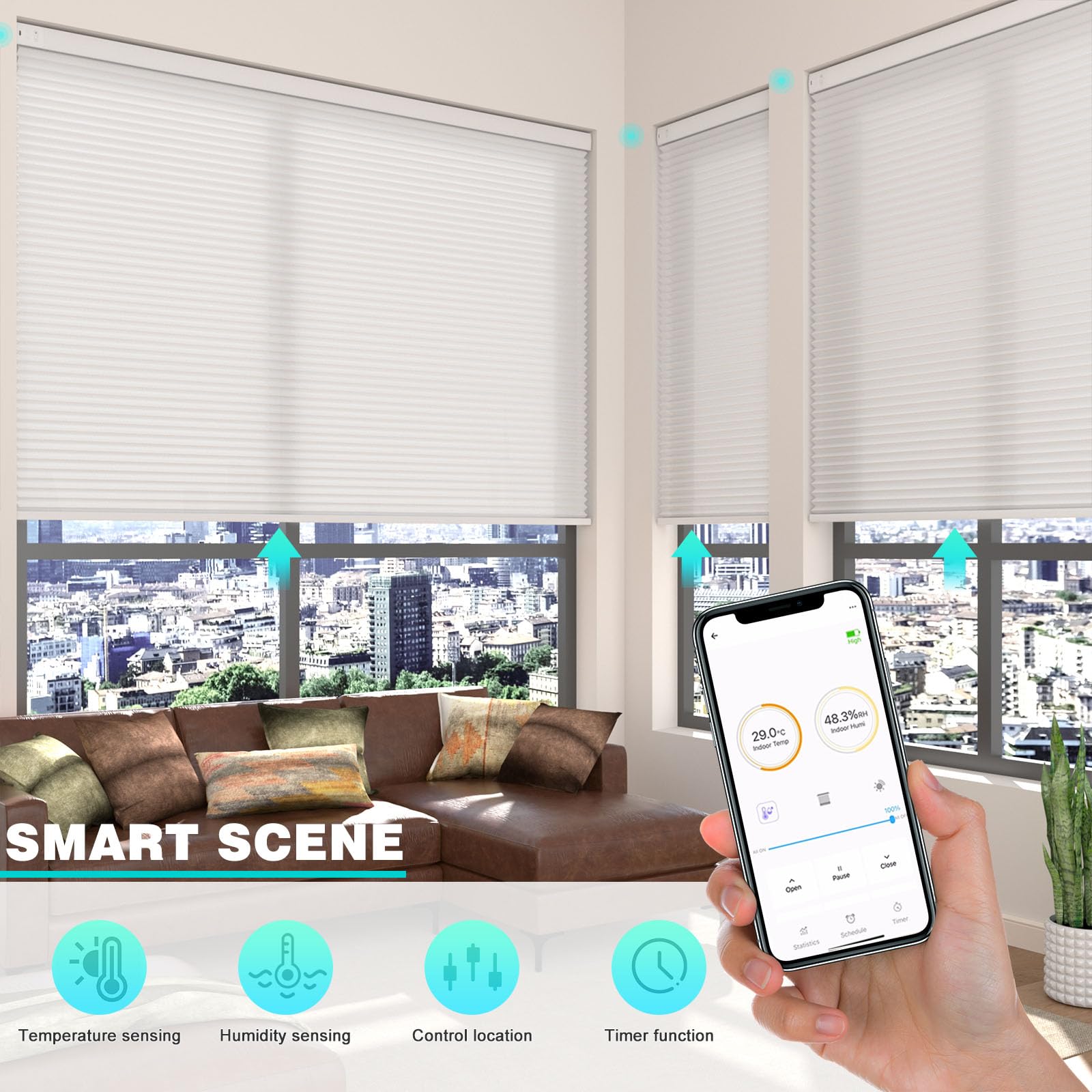 - SOUND & HEAT INSULATION: Changshade customized motorized blinds are built-in smart battery motors, unique honeycomb construction offers sound absorption, so as to provide you with a comfortable space. Provide shading and heat insulation effects, while also protecting you and your family from ultraviolet rays. Smart blinds also work well in noise reduction and privacy protection.